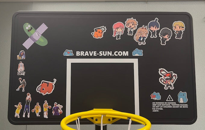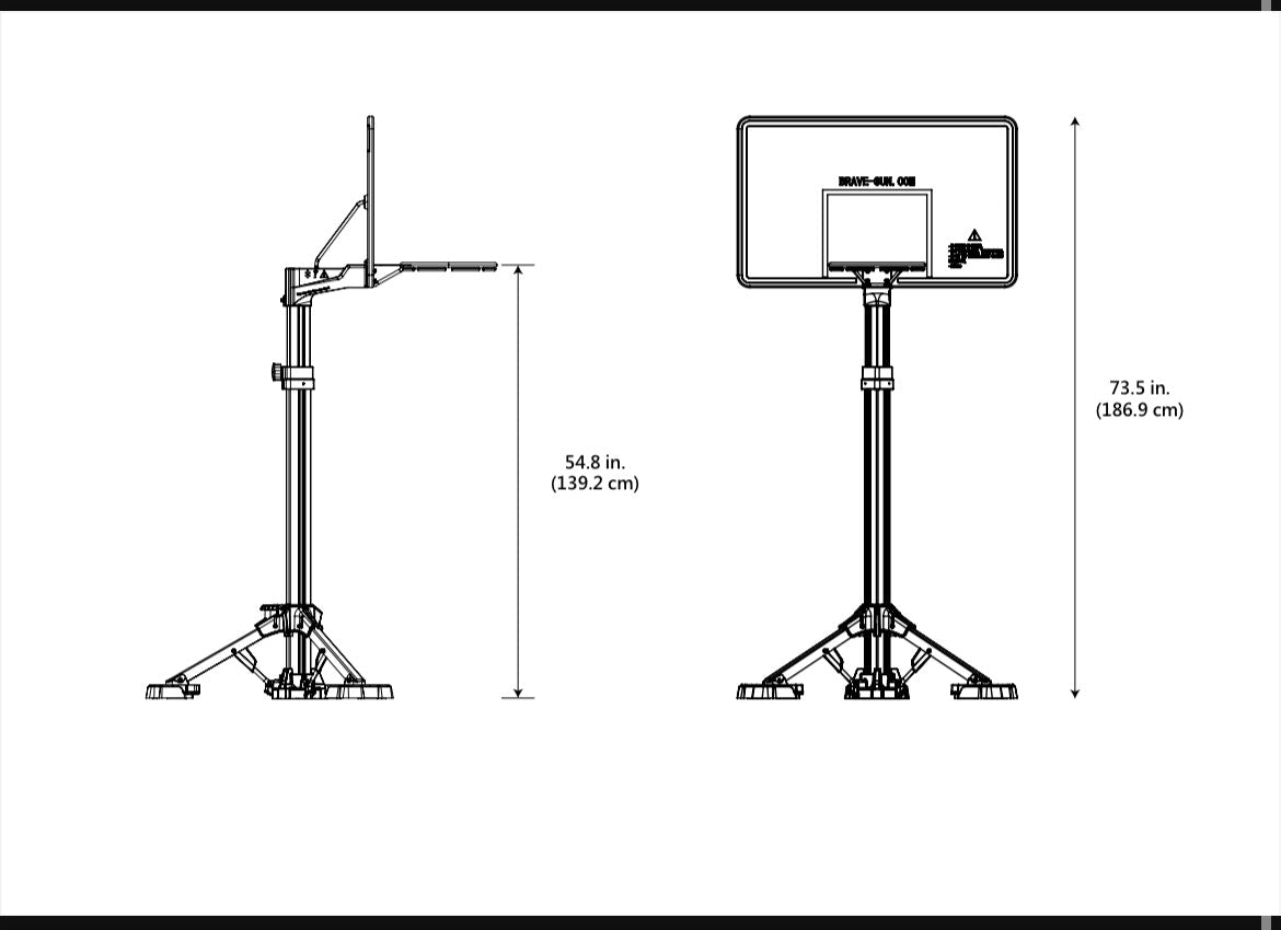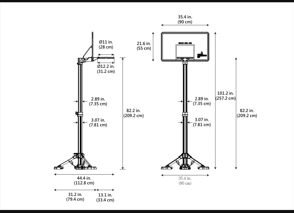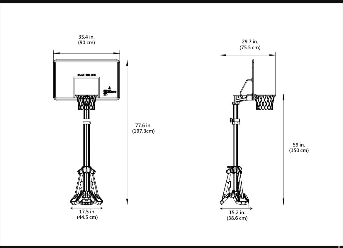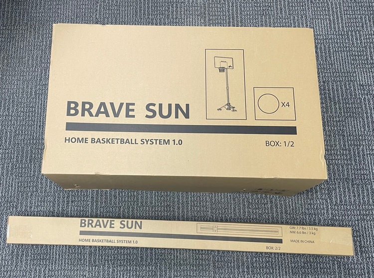 -1 Rim and Net. (diameter: 11 inches / 28 cm) -1 Backboard and 2 supporters. -1 Neck. -2 Aluminum poles. (inner and outer) -1 Height adjustment Knob and nut. -1 Tripod base. -3 Weight Holders. (Tripod Feet) -3 Weight plates. (8 lb/ 3.6 kg each) -4 Orange Foam Balls. (100.0% Polyurethane) (diameter: 7 inches / 18 cm)